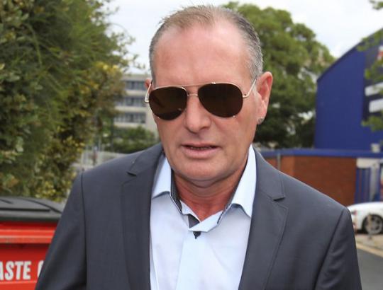Gascoigne, clutching a packet of cigarettes and wearing a dark suit, pale blue shirt, beige loafers with no socks and sunglasses, was greeted outside Stevenage Magistrates' Court by a media scrum.