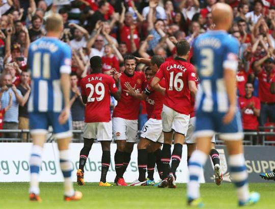 Barclays Premier League champions Manchester United have won the Community Shield with a 2-0 victory over FA Cup holders Wigan at Wembley.